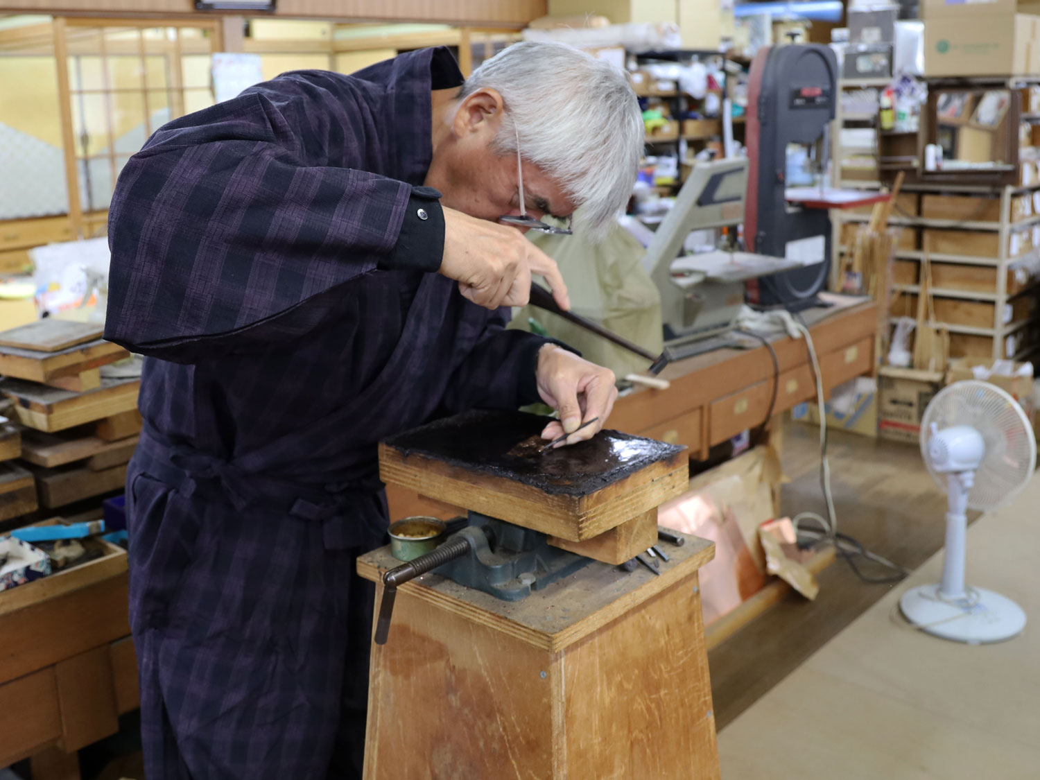 彫金も独自で築いたものですが、筋も真っすぐにひいていますので自信は持っています。一番の要は