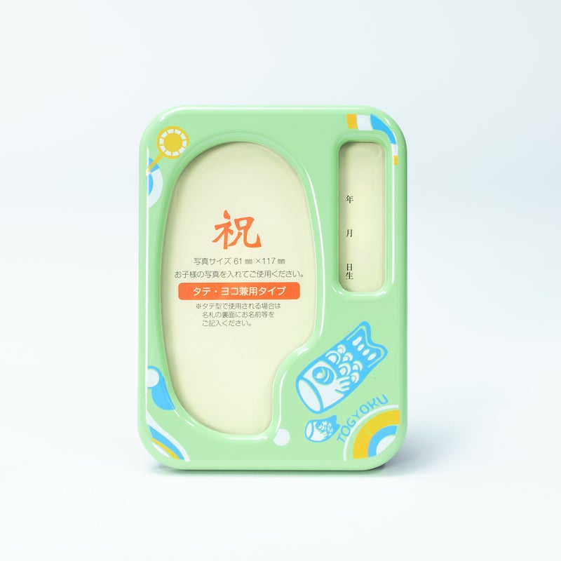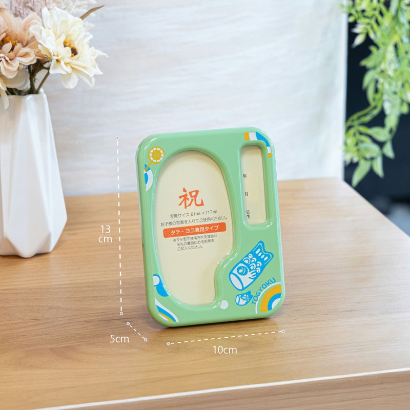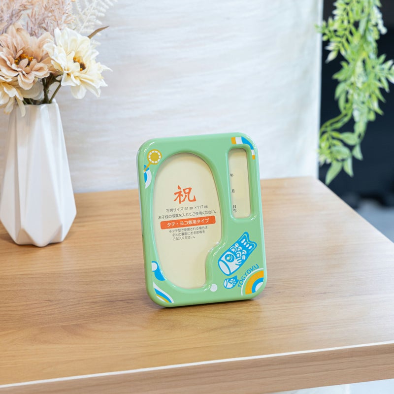 写真立てにオルゴールが付いています。 初節句の思い出の写真と名前を書き込めます。