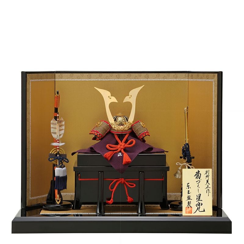 飾り台が収納箱になり兜とお道具をそのまま収納できる人気の五月人形