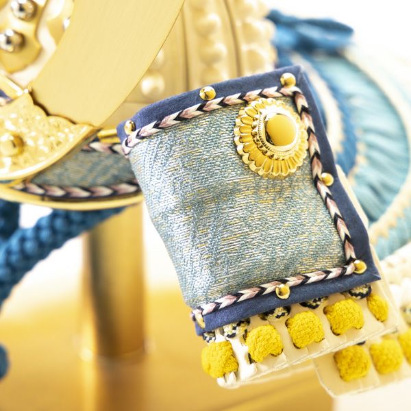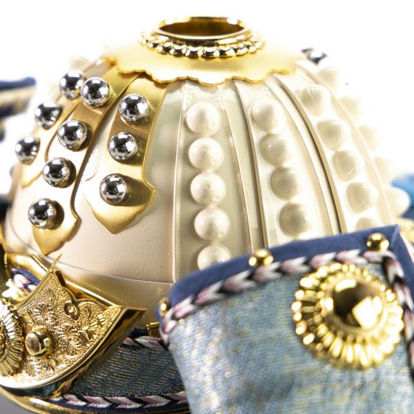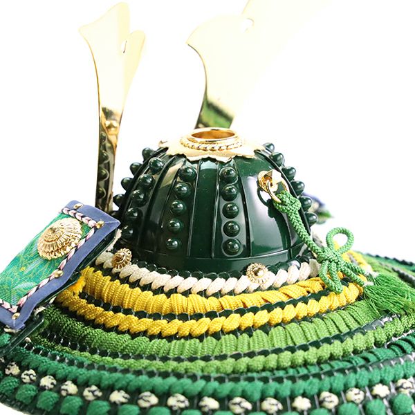 色鮮やかな兜に作り込んだ細やかな手仕事が加わることで、存在感と趣のある兜が完成しました。