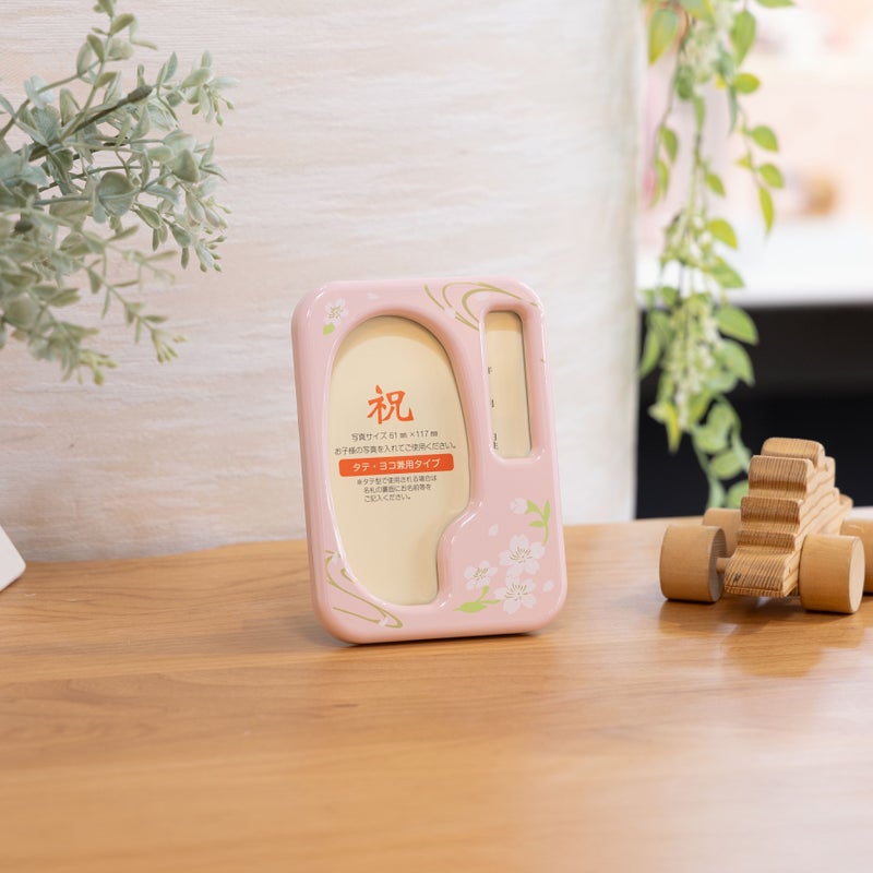 写真立てにオルゴールが付いています。 初節句の思い出の写真と名前を書き込めます。