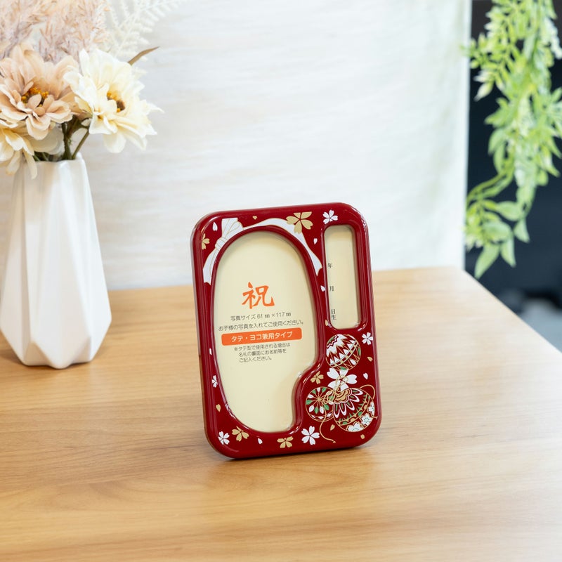 写真立てにオルゴールが付いています。 初節句の思い出の写真と名前を書き込めます。