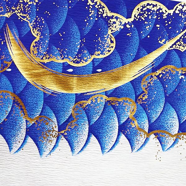 金彩弦月之鯉 豪"が室内鯉のぼりで登場。外飾りの迫力をそのままに金に輝く弦月に加え、吹き流しには龍柄を追加。さらに強さを象徴する鯉のぼりとなりました。室内でも"金彩弦月之鯉 豪"でお祝いください。