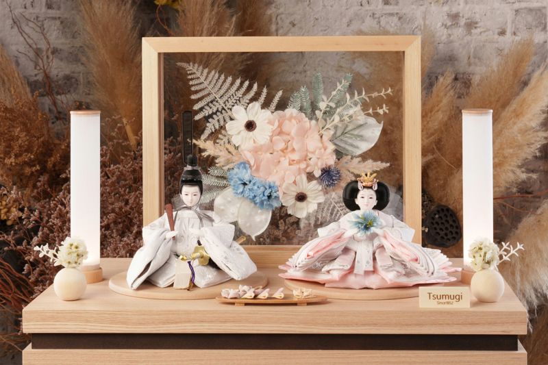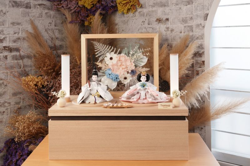 • セット内容:雛人形・飾台(収納箱)・屏風・前飾り・花・灯り・作札収納
