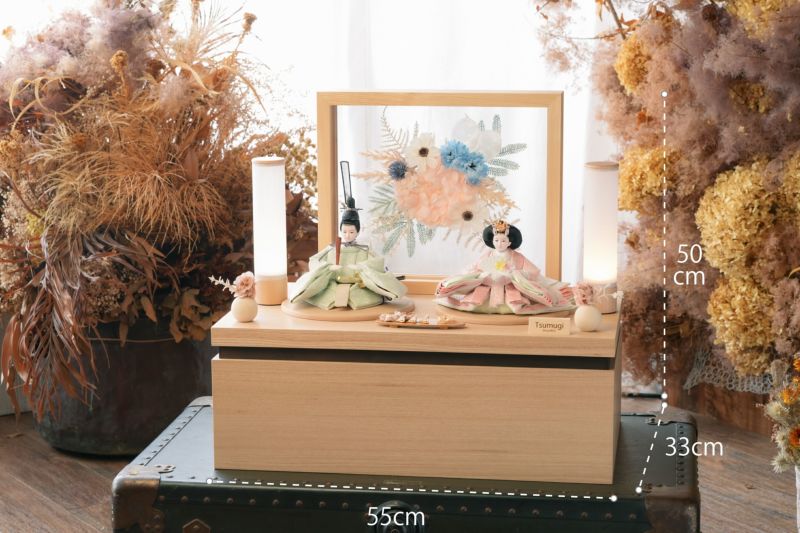 • セット内容:雛人形・飾台(収納箱)・屏風・前飾り・花・灯り・作札収納