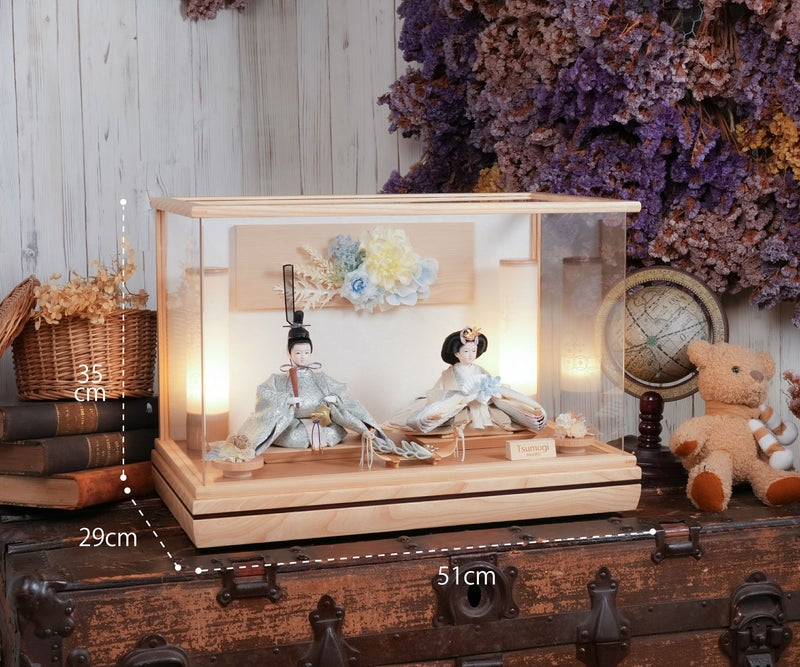 人形とお道具が全てケースに入った 手間なくお楽しみいただけるお飾り