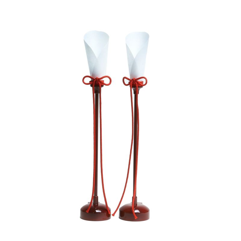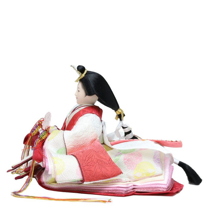 古典的とも言える金茶色のお殿様と緋色のお雛様ですが、草木染のぼかし技法で優しく温かみのある風合いになっております。コンパクトな白木調の台屏風は今どきのインテリアにもよく合います。