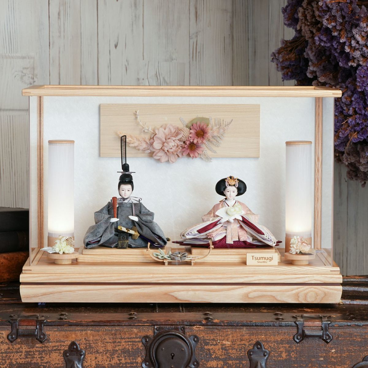 人形とお道具が全てケースに入った 手間なくお楽しみいただけるお飾り
