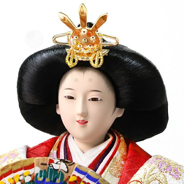 優雅シリーズの収納部門人気ナンバーワンのセット!全体の雰囲気は雛人形の伝統美を意識した蒔絵付き金屏風・黒ベースの豪華な刺繍の敷き布。人形は、雛人形の代表色 紺・赤の衣装。美しいお顔も人気です。家具調の収納箱の中に一個口にコンパクトに収納いただけます。