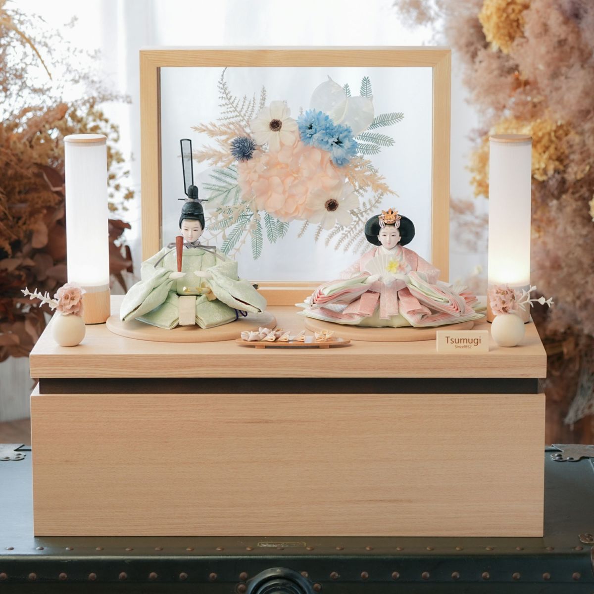人形とお道具が全てケースに入った 手間なくお楽しみいただけるお飾り