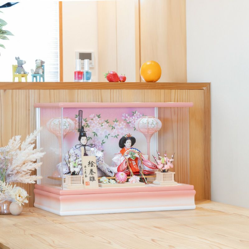 人形とお道具が全てケースに入った 手間なくお楽しみいただけるお飾り