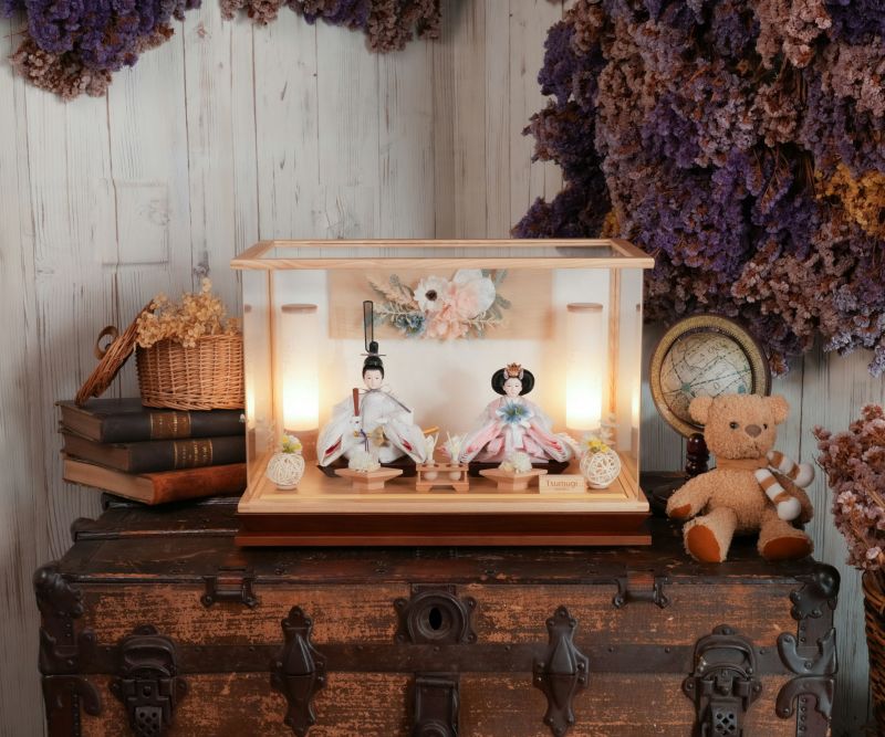 人形とお道具が全てケースに入った 手間なくお楽しみいただけるお飾り