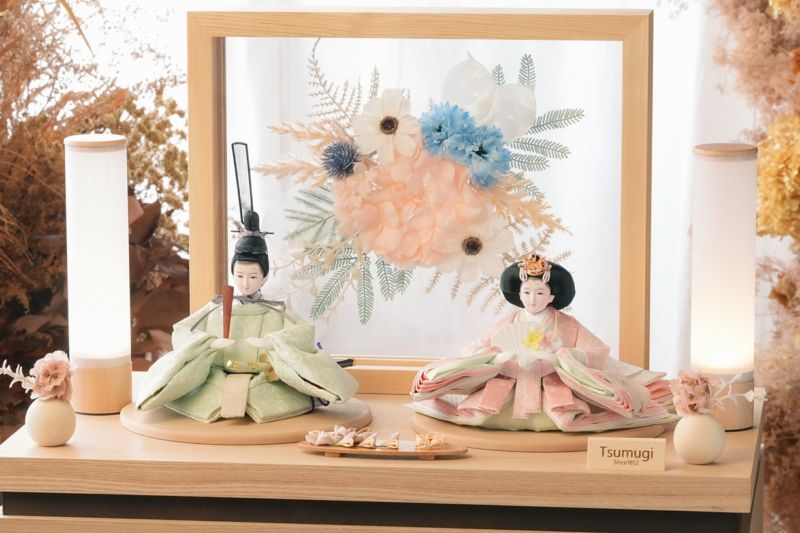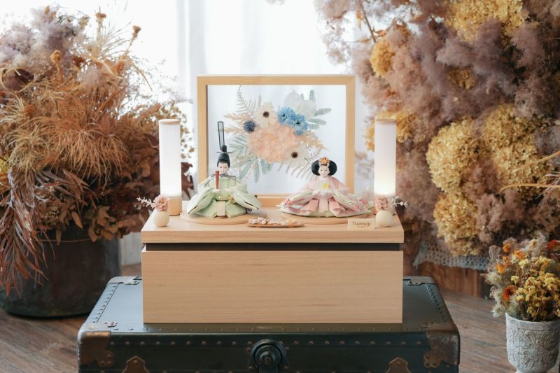 • セット内容:雛人形・飾台(収納箱)・屏風・前飾り・花・灯り・作札収納