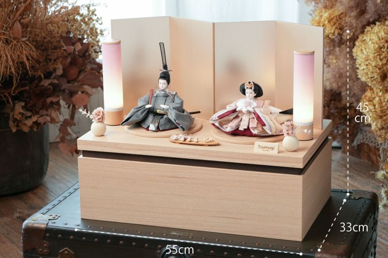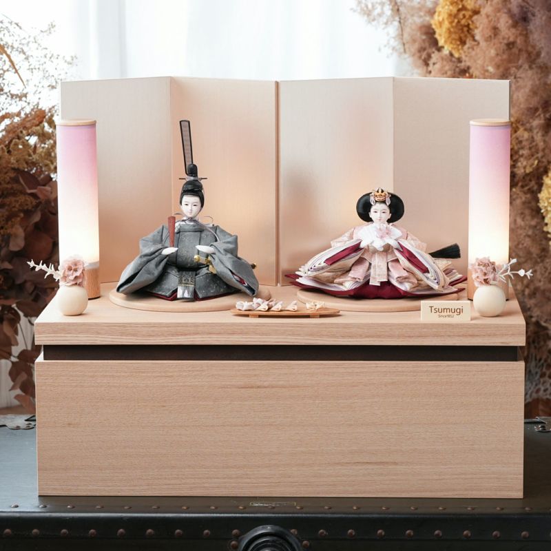• セット内容:雛人形・飾台(収納箱)・屏風・前飾り・花・灯り・作札収納