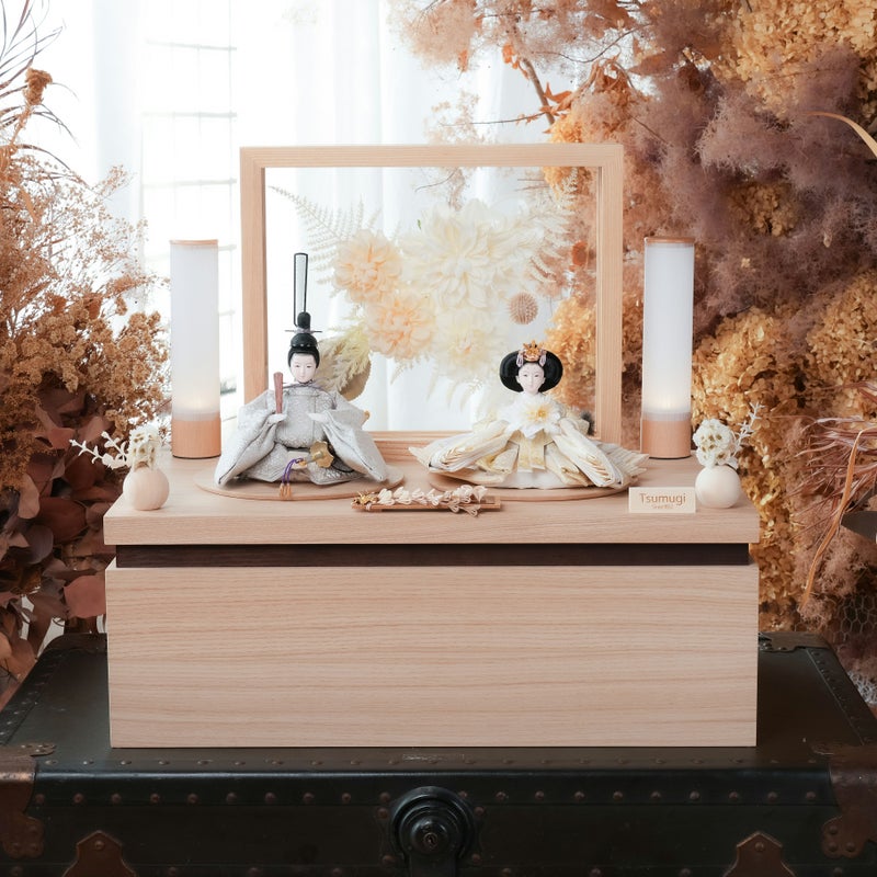 人形とお道具が全てケースに入った 手間なくお楽しみいただけるお飾り
