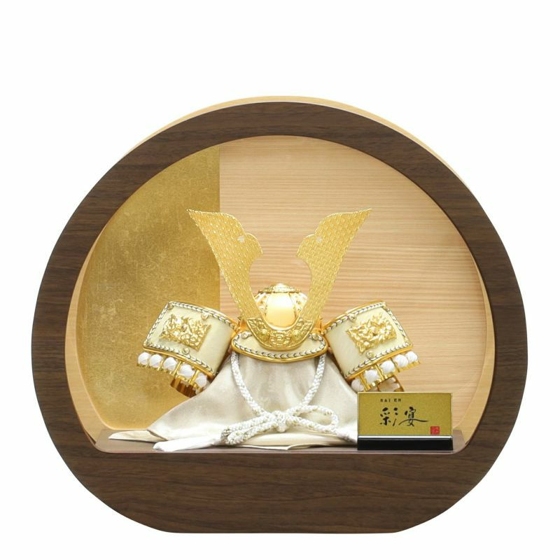 丸型で木目調のアクリル兜ケース飾りです。アクリルなので割れにくく安心して飾れます。兜が映えるようにバックのデザインも金と木目で統一されています。コンパクトなのでリビングや玄関などにも飾れます。