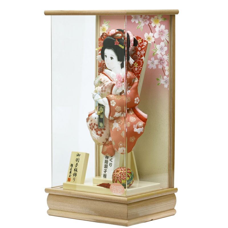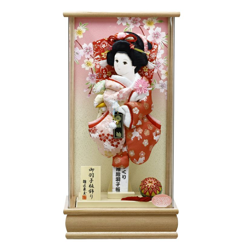 羽子板飾り「10号花振袖うさぎ赤ピンク」