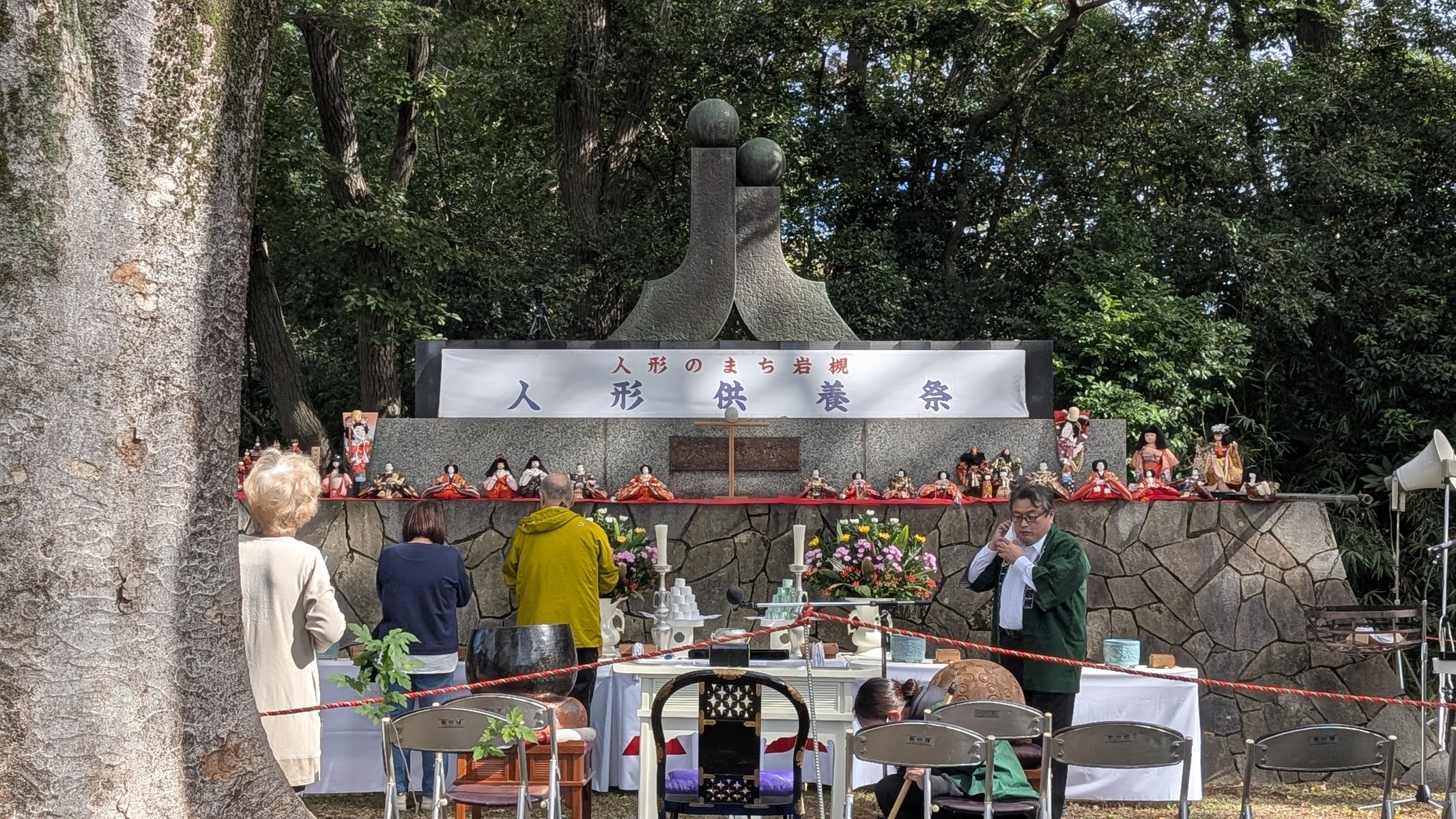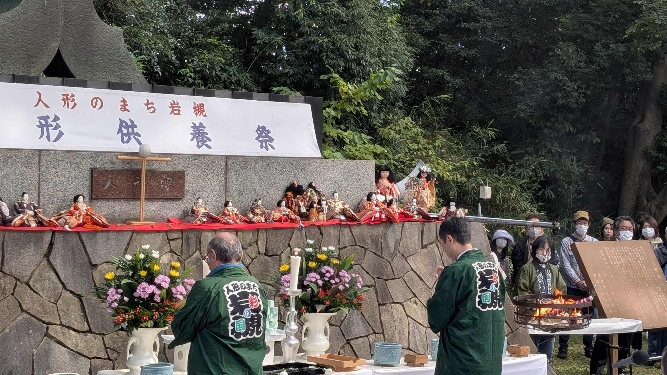 岩槻城址公園内に佇む人形塚は、「人形のまち」として知られる岩槻の象徴的な場所です。この日、人形塚前には読経が響き渡り、長年家族とともに過ごしてきた人形たちへの感謝と、これまでの思い出を偲ぶ時間となりました。