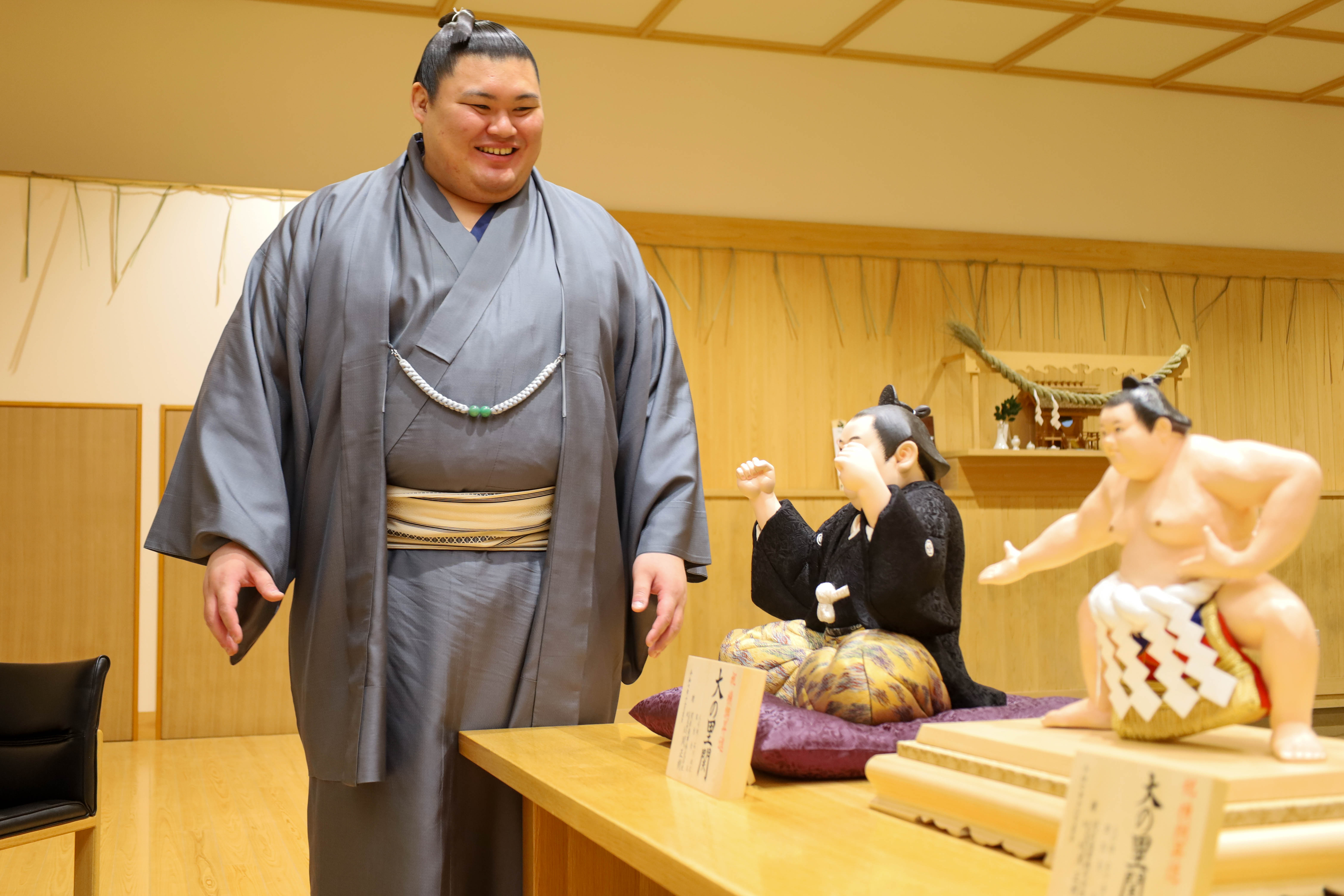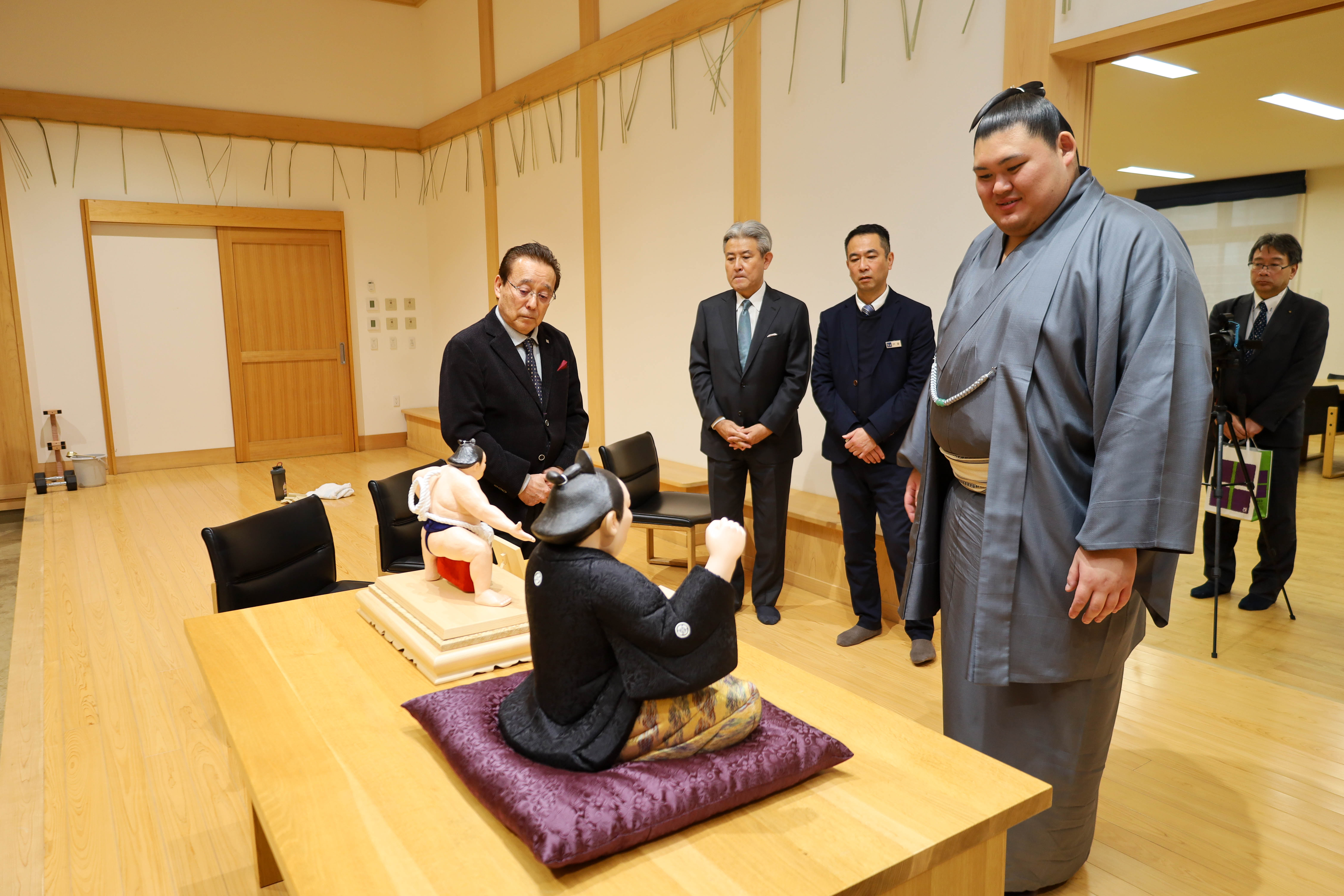 「表情や肌などの細部に至るまで精巧に作られており、大変光栄に感じています。まるで自分を見ているようで、不思議な気持ちです。この人形は私の宝物として、大切に保管させていただきます。そして、この人形に恥じないような横綱を目指して、精進してまいります」