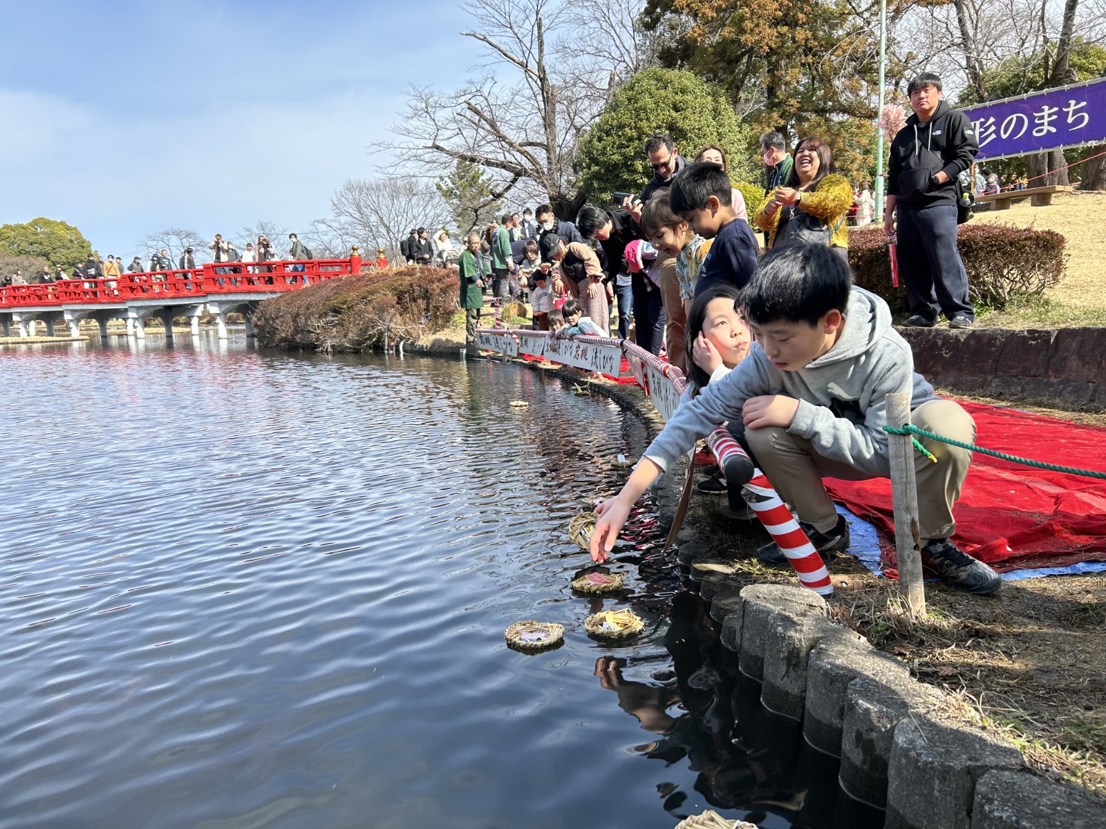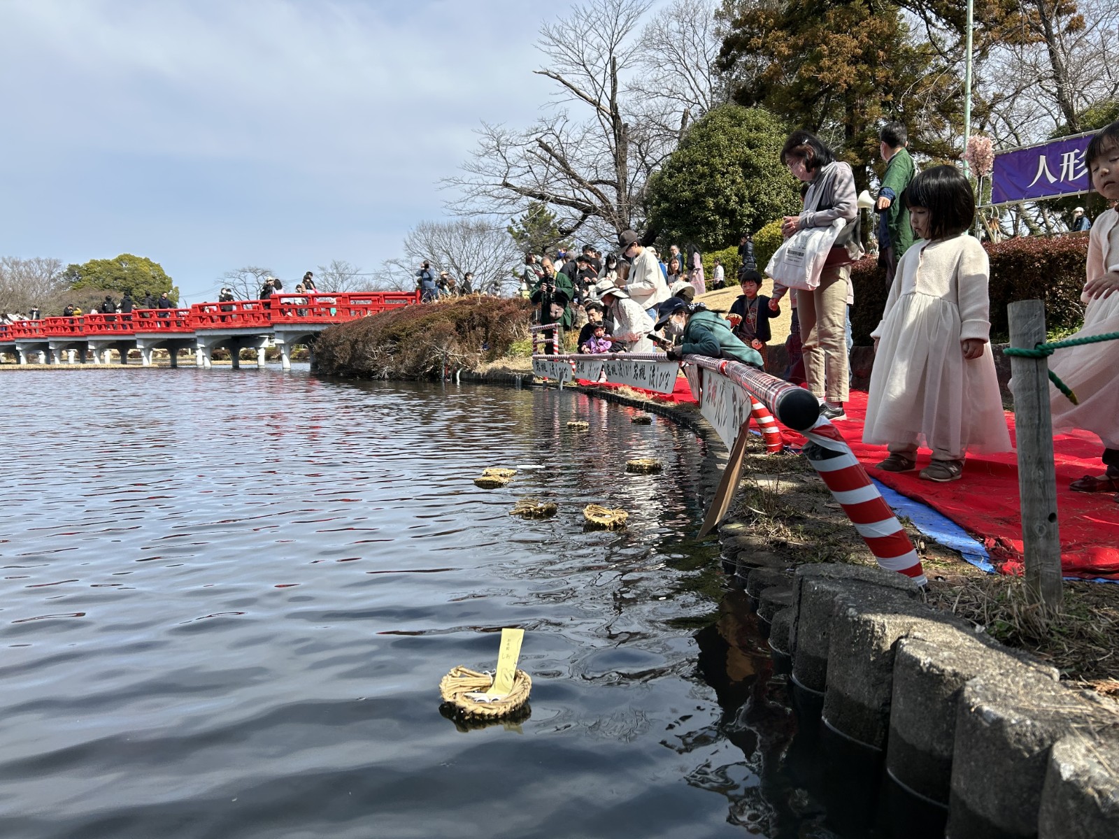 人形のまち岩槻では毎年 3/3の前の日曜日に、岩槻城址公園で「流しひな」を開催しています。