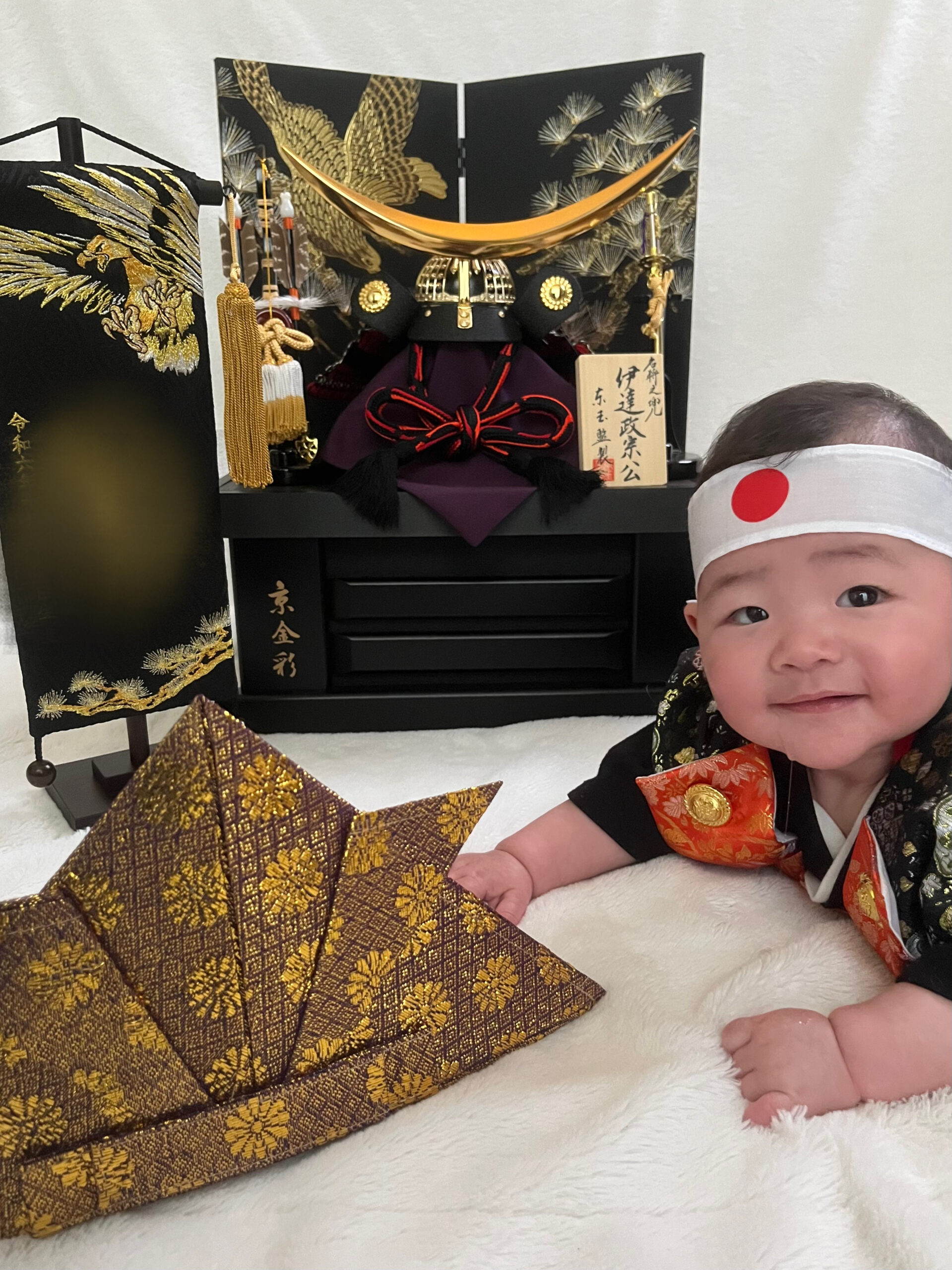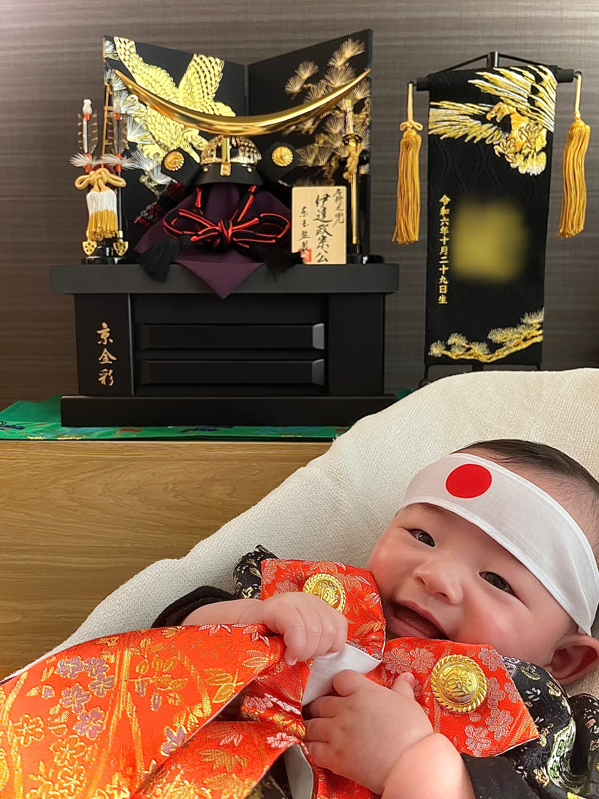 - A:催事で見ていた時よりも立派に見えてとてもかっこ良かったです。購入特典の名前旗や祝い着がとても豪華でした。息子は0歳ですが飾ってある期間ずっと気になる様子でチラチラ見ていて可愛かったです(笑)