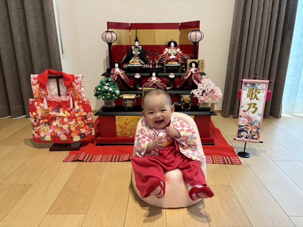 - A:両家の祖父母を招待して、雛人形と一緒に写真を撮ったり、お店に行って食事をして過ごしました。