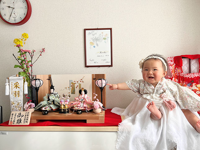 娘もお雛様を気に入ったようで、毎日お雛様を見てはにっこりして楽しそうにしていて、このお雛様にしてよかったなぁと思っています。