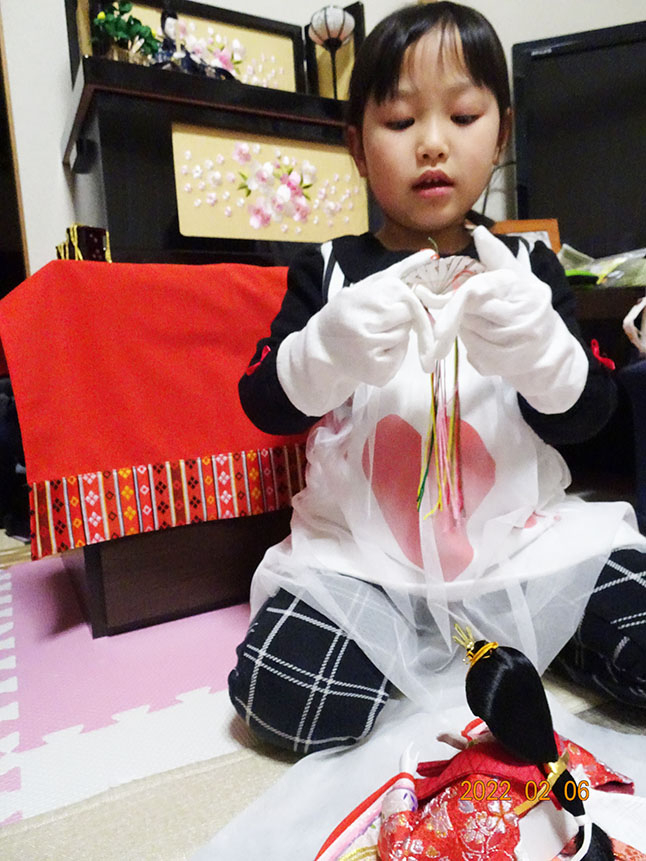 - A:上の子が雛人形の周りを飾り付けしたりして楽しんでいた。