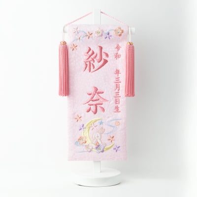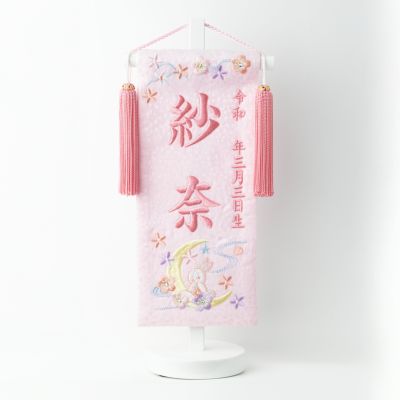 ひな名前旗 ピンク月うさピンク刺繍Sのレビューを書く