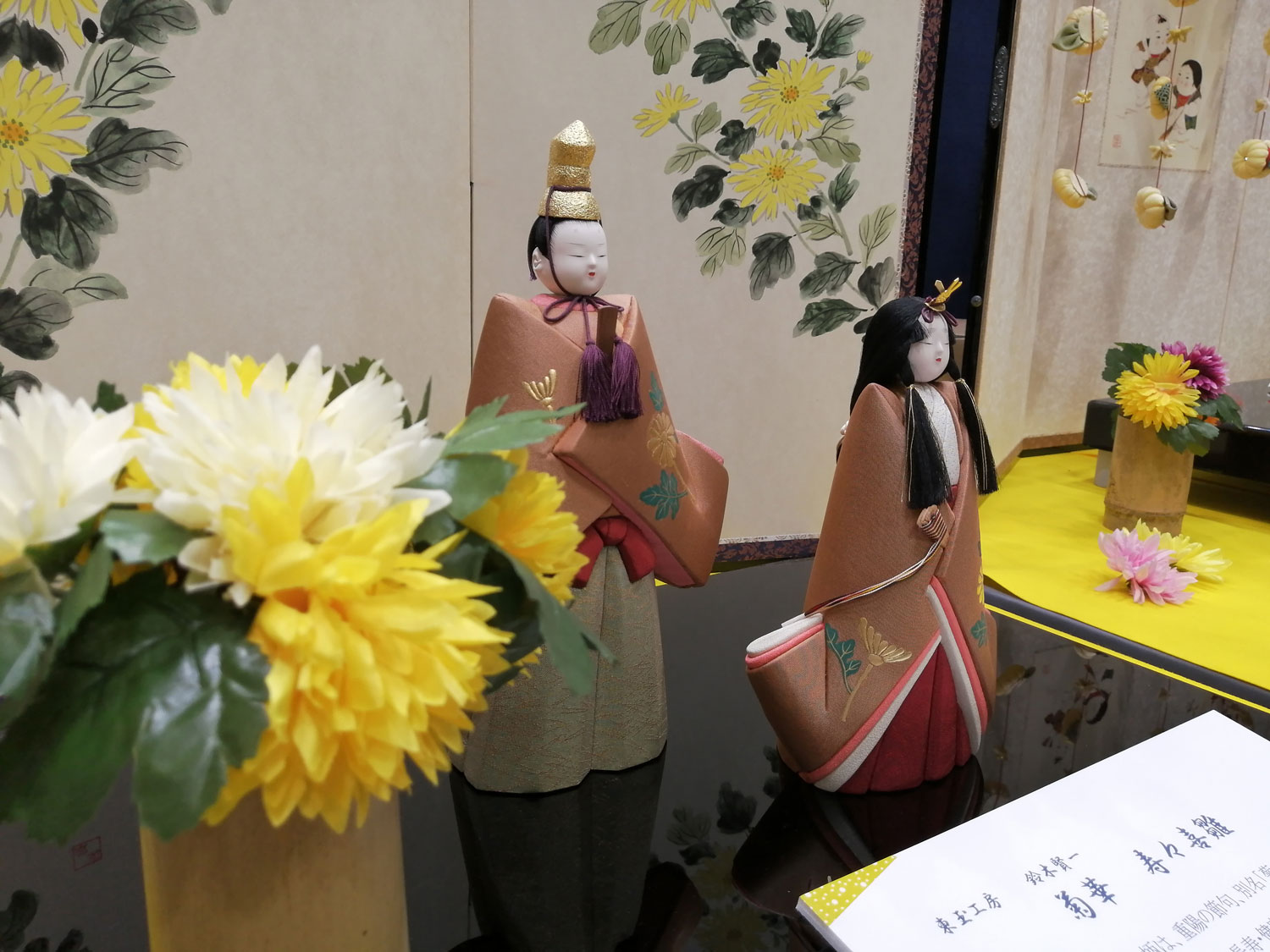 ここ人形の東玉総本店エントランスフロアでも、このように重陽の節句イベントに向けて模様替えとなりました。